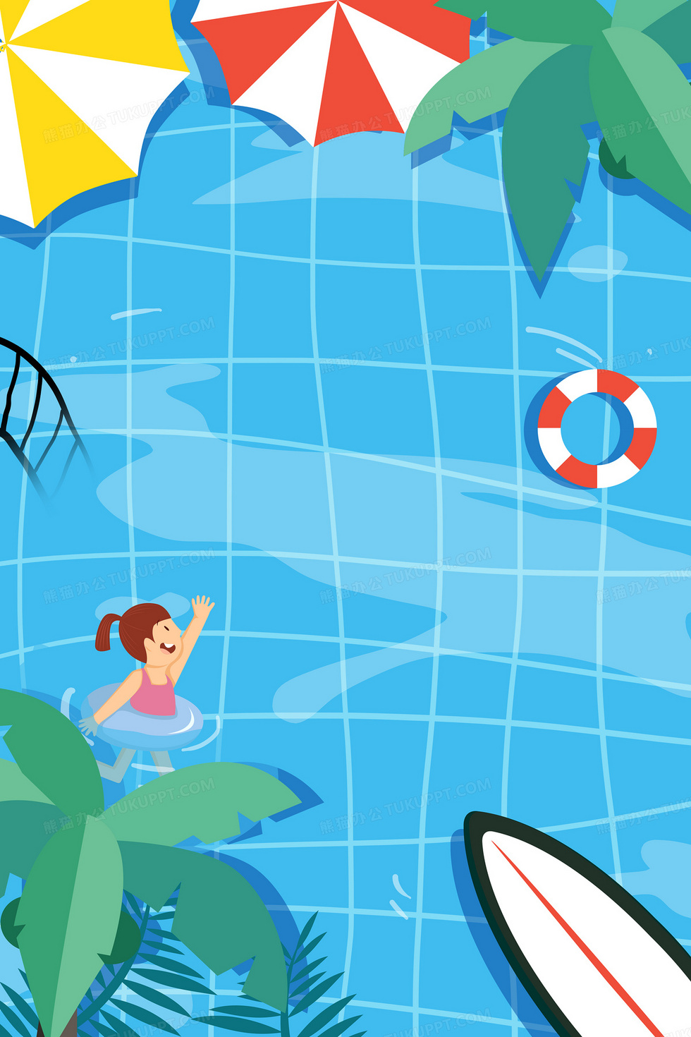 本作品内容为凉爽的夏日游泳泳池卡通背景, 格式为 psd, 大小7 MB, 图片尺寸为3543 x 5315, 作品中背景图片无需修改, 源文件无水印,可以直接使用, 欢迎使用熊猫办公。 如认为平台内容涉嫌侵权,可通过邮件:tousu@tukuppt.com提出书面通知,我们将及时处理。