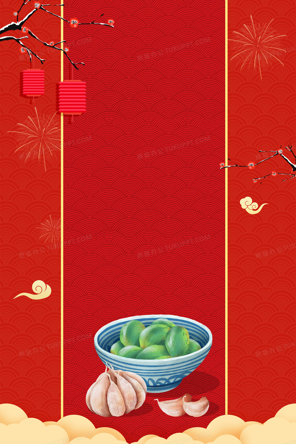 本作品内容为中国风红色喜庆传统节日腊八节腊八蒜背景, 格式为 psd, 大小26 MB, 图片尺寸为3543 x 5315, 作品中背景图片无需修改, 源文件无水印,可以直接使用, 欢迎使用熊猫办公。 如认为平台内容涉嫌侵权,可通过邮件:tousu@tukuppt.com提出书面通知,我们将及时处理。