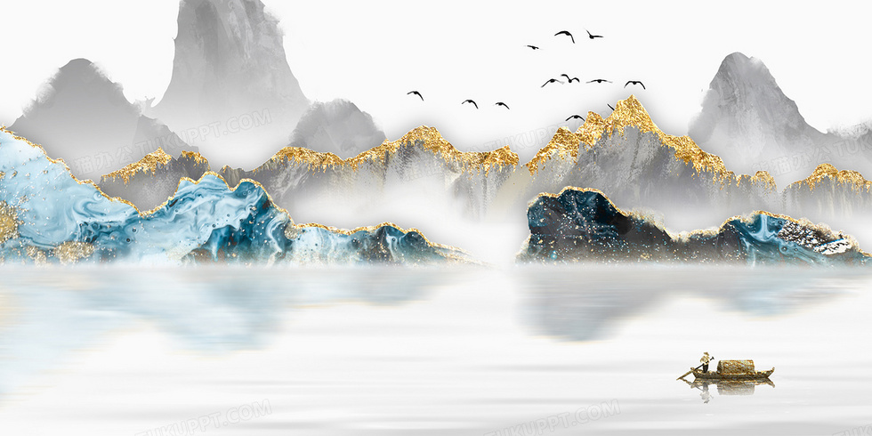 本作品内容为中国风鎏金山水背景, 格式为 psd, 大小40 MB, 图片尺寸为4724 x 2362, 作品中背景图片无需修改, 源文件无水印,可以直接使用, 欢迎使用熊猫办公。 如认为平台内容涉嫌侵权,可通过邮件:tousu@tukuppt.com提出书面通知,我们将及时处理。
