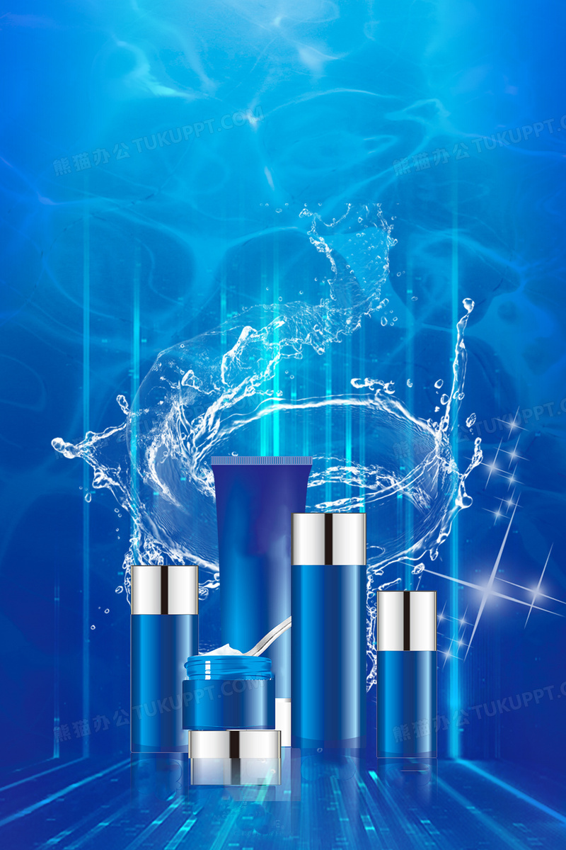 本作品内容为蓝色质感护肤品活动促销背景, 格式为 psd, 大小17 MB, 图片尺寸为1181 x 1772, 作品中背景图片无需修改, 源文件无水印,可以直接使用, 欢迎使用熊猫办公。 如认为平台内容涉嫌侵权,可通过邮件:tousu@tukuppt.com提出书面通知,我们将及时处理。