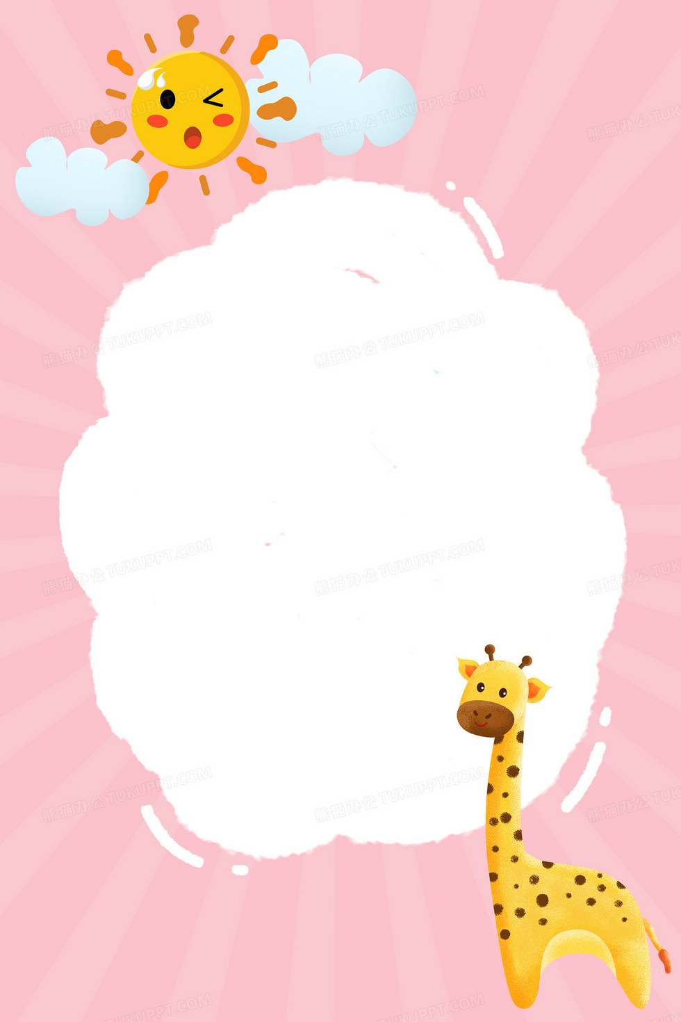 本作品内容为儿童卡通手绘长颈鹿可爱背景, 格式为 psd, 大小12 MB, 图片尺寸为3543 x 5315, 作品中背景图片无需修改, 源文件无水印,可以直接使用, 欢迎使用熊猫办公。 如认为平台内容涉嫌侵权,可通过邮件:tousu@tukuppt.com提出书面通知,我们将及时处理。
