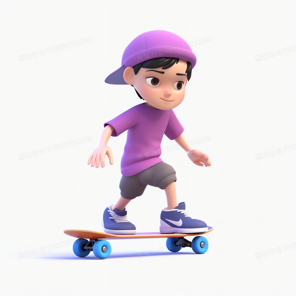 本作品内容为反戴紫色棒球帽玩滑板的可爱男孩3D模型, 格式为 jpg, 大小1 MB, 图片尺寸为2048 x 2048, 源文件无水印, 欢迎使用熊猫办公。 如认为平台内容涉嫌侵权,可通过邮件:tousu@tukuppt.com提出书面通知,我们将及时处理。