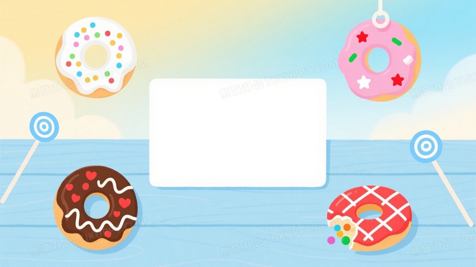 本作品内容为柔黄蓝渐变甜品插画背景, 格式为 jpg, 大小1 MB, 图片尺寸为1664 x 936, 作品中背景图片无需修改, 源文件无水印,可以直接使用, 欢迎使用熊猫办公。 如认为平台内容涉嫌侵权,可通过邮件:tousu@tukuppt.com提出书面通知,我们将及时处理。