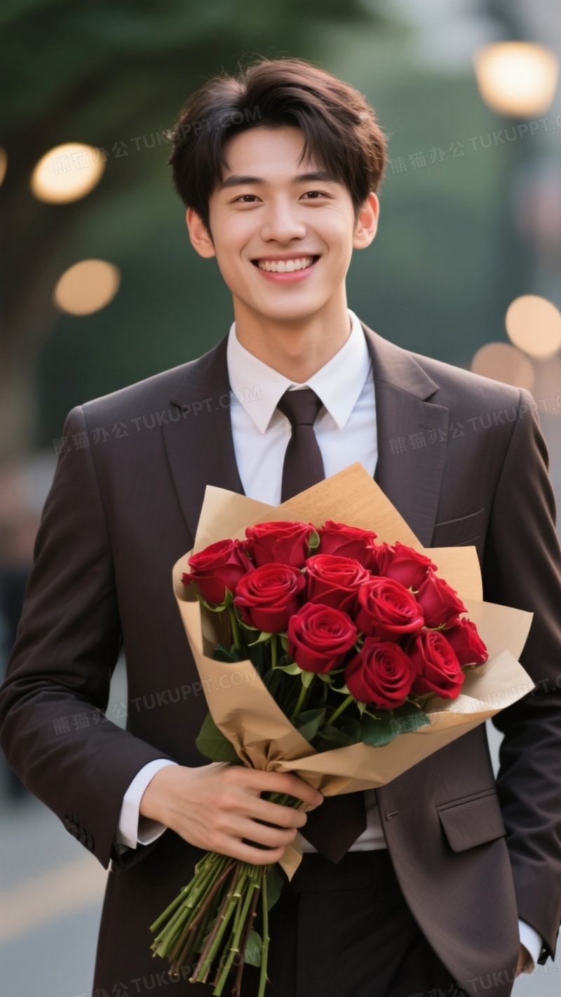 本作品内容为一个帅气的小哥哥手拿一束玫瑰, 格式为 jpg, 大小1 MB, 图片尺寸为936 x 1664, 源文件无水印, 欢迎使用熊猫办公。 如认为平台内容涉嫌侵权,可通过邮件:tousu@tukuppt.com提出书面通知,我们将及时处理。
