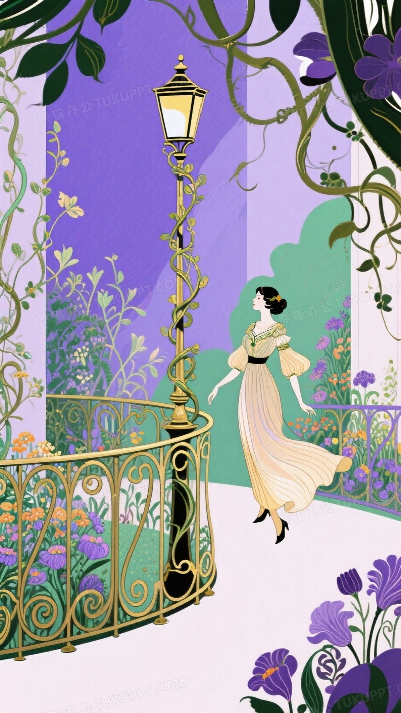 本作品内容为新艺术风格花园插画弯曲的铁艺栏杆环绕着奇异花卉, 格式为 jpg, 大小1 MB, 图片尺寸为936 x 1664, 源文件无水印, 欢迎使用熊猫办公。 如认为平台内容涉嫌侵权,可通过邮件:tousu@tukuppt.com提出书面通知,我们将及时处理。