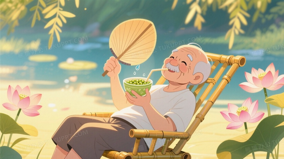 本作品内容为夏天的卡通插画一位老人躺在竹椅上摇着蒲扇喝绿豆汤解暑, 格式为 jpg, 大小1 MB, 图片尺寸为1664 x 936, 源文件无水印, 欢迎使用熊猫办公。 如认为平台内容涉嫌侵权,可通过邮件:tousu@tukuppt.com提出书面通知,我们将及时处理。