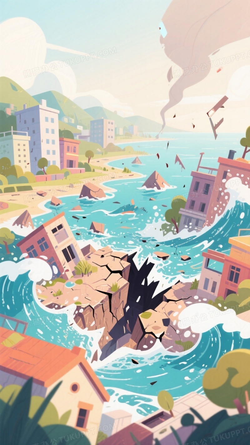本作品内容为精致的卡通科普插画描绘地震引发的地裂, 格式为 jpg, 大小1 MB, 图片尺寸为936 x 1664, 源文件无水印, 欢迎使用熊猫办公。 如认为平台内容涉嫌侵权,可通过邮件:tousu@tukuppt.com提出书面通知,我们将及时处理。