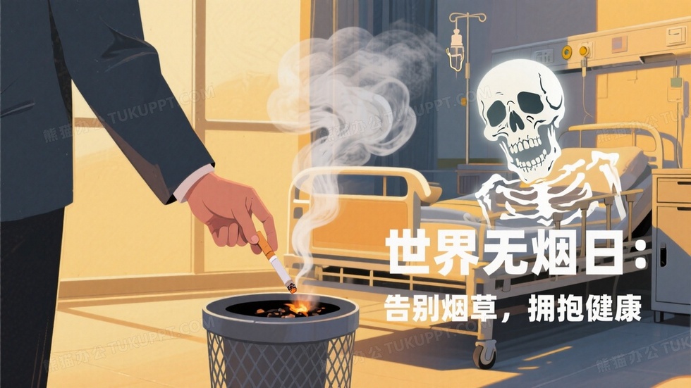 本作品内容为公益风格插画主标题世界无烟日, 格式为 jpg, 大小1 MB, 图片尺寸为1664 x 936, 源文件无水印, 欢迎使用熊猫办公。 如认为平台内容涉嫌侵权,可通过邮件:tousu@tukuppt.com提出书面通知,我们将及时处理。