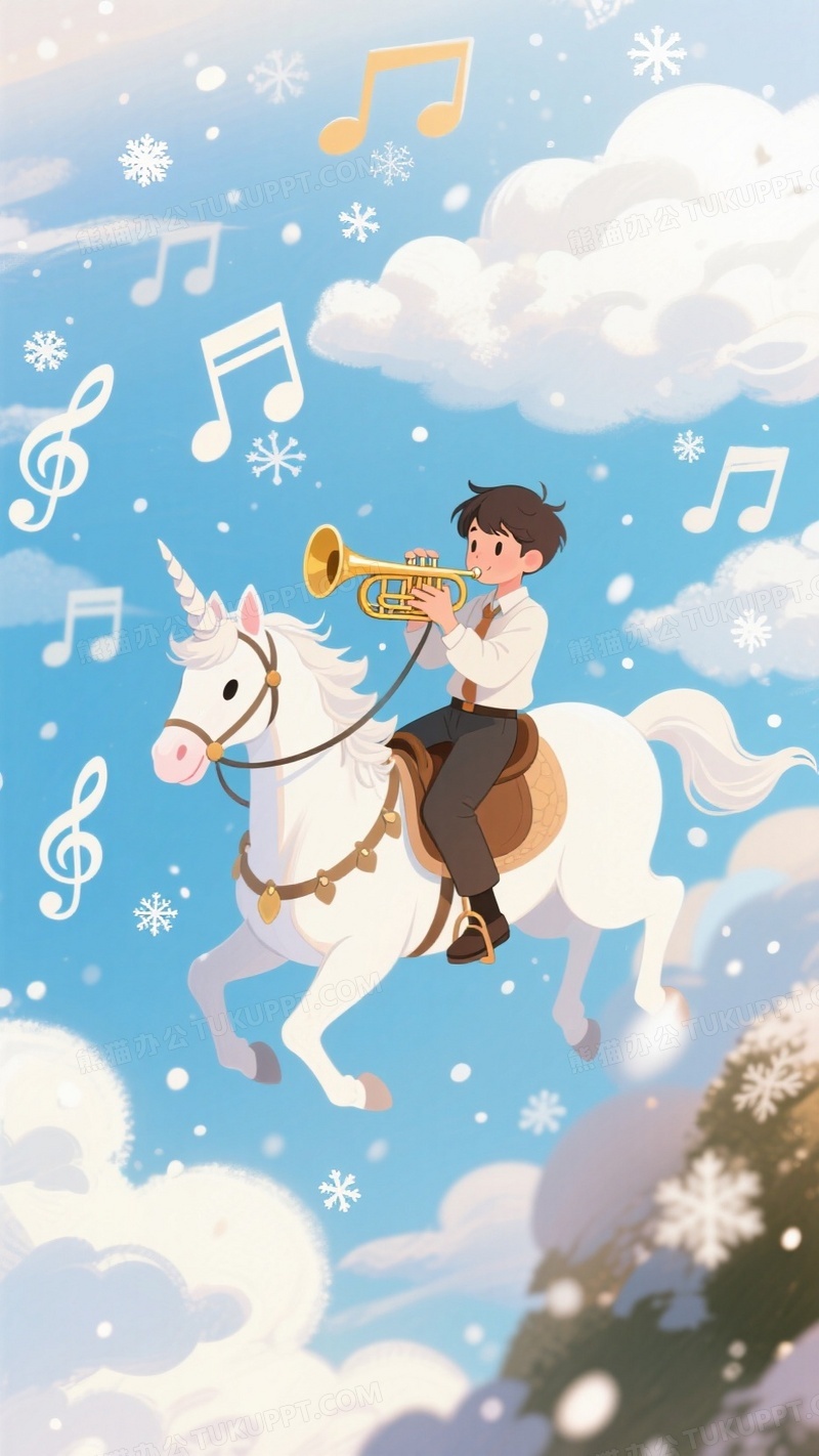 本作品内容为好看的高清卡通插画一位骑着独角兽的少年在空中演奏长号, 格式为 jpg, 大小1 MB, 图片尺寸为936 x 1664, 源文件无水印, 欢迎使用熊猫办公。 如认为平台内容涉嫌侵权,可通过邮件:tousu@tukuppt.com提出书面通知,我们将及时处理。