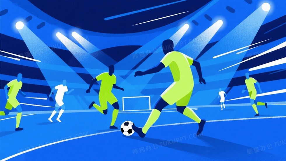 本作品内容为高清的足球比赛插画冷蓝色调的灯光照亮球场, 格式为 jpg, 大小1 MB, 图片尺寸为1664 x 936, 源文件无水印, 欢迎使用熊猫办公。 如认为平台内容涉嫌侵权,可通过邮件:tousu@tukuppt.com提出书面通知,我们将及时处理。