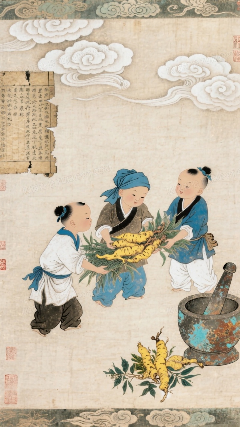 本作品内容为仿古壁画采药童子群像, 格式为 jpg, 大小1 MB, 图片尺寸为936 x 1664, 源文件无水印, 欢迎使用熊猫办公。 如认为平台内容涉嫌侵权,可通过邮件:tousu@tukuppt.com提出书面通知,我们将及时处理。