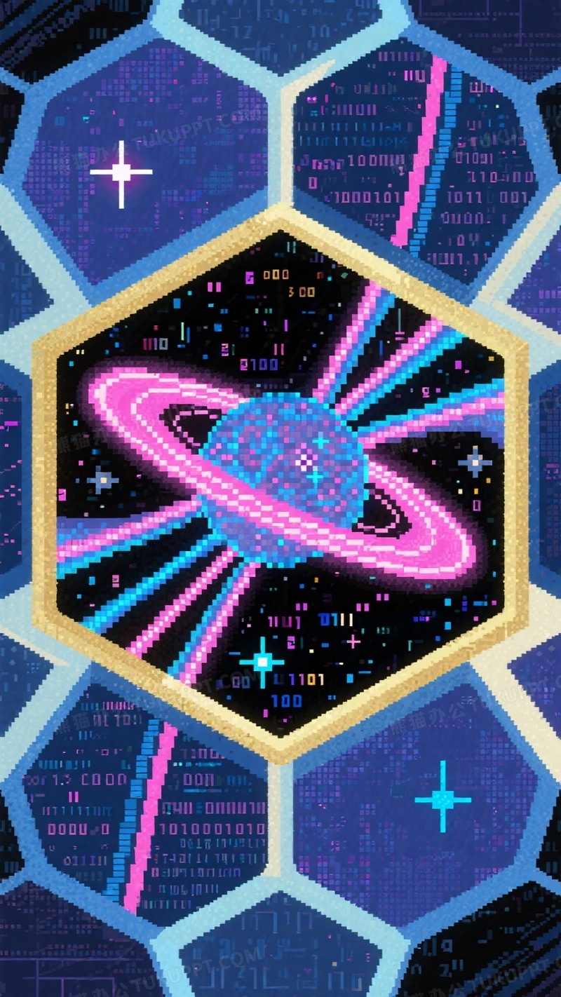 本作品内容为抽象几何银河系插画六边形模块拼接行星环, 格式为 jpg, 大小1 MB, 图片尺寸为936 x 1664, 源文件无水印, 欢迎使用熊猫办公。 如认为平台内容涉嫌侵权,可通过邮件:tousu@tukuppt.com提出书面通知,我们将及时处理。