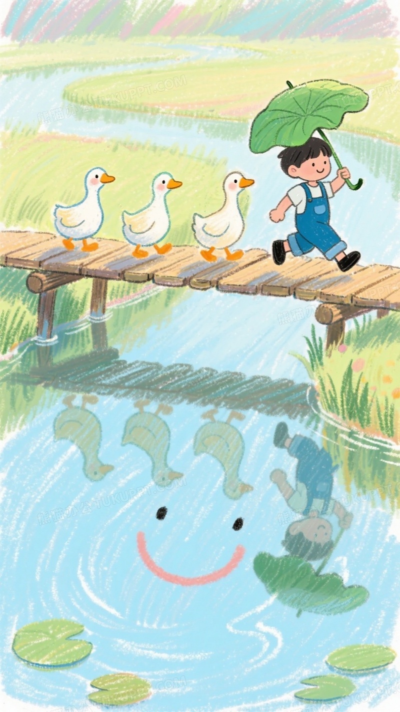 本作品内容为蜡笔质感童趣场景五只呆萌小鹅排队过木桥, 格式为 jpg, 大小1 MB, 图片尺寸为936 x 1664, 源文件无水印, 欢迎使用熊猫办公。 如认为平台内容涉嫌侵权,可通过邮件:tousu@tukuppt.com提出书面通知,我们将及时处理。