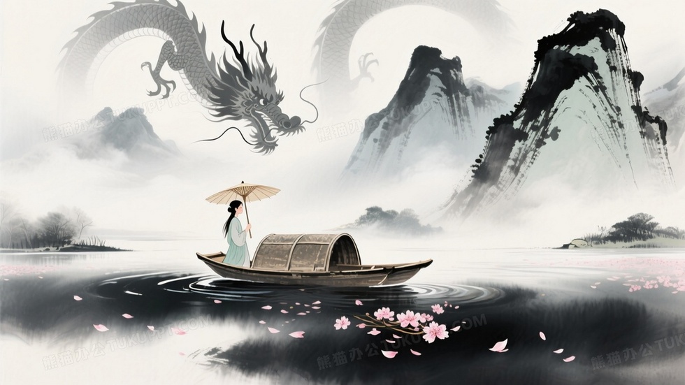 本作品内容为动态水墨效果插画江面漂浮着零落桃花瓣, 格式为 jpg, 大小1 MB, 图片尺寸为1664 x 936, 源文件无水印, 欢迎使用熊猫办公。 如认为平台内容涉嫌侵权,可通过邮件:tousu@tukuppt.com提出书面通知,我们将及时处理。