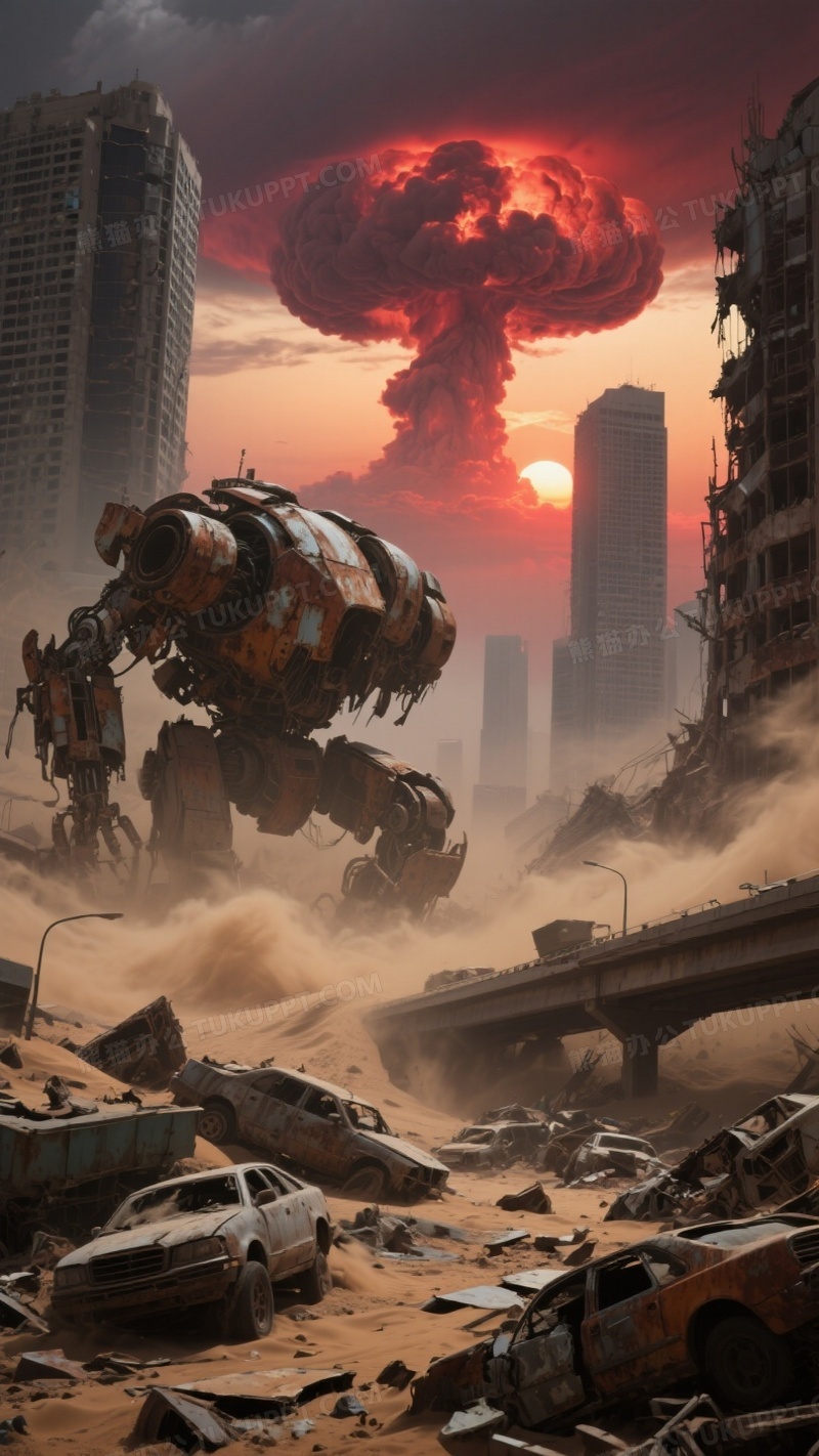 本作品内容为后末日废墟城市锈蚀的巨型机械残骸与倒塌的摩天大楼交织, 格式为 jpg, 大小1 MB, 图片尺寸为936 x 1664, 源文件无水印, 欢迎使用熊猫办公。 如认为平台内容涉嫌侵权,可通过邮件:tousu@tukuppt.com提出书面通知,我们将及时处理。