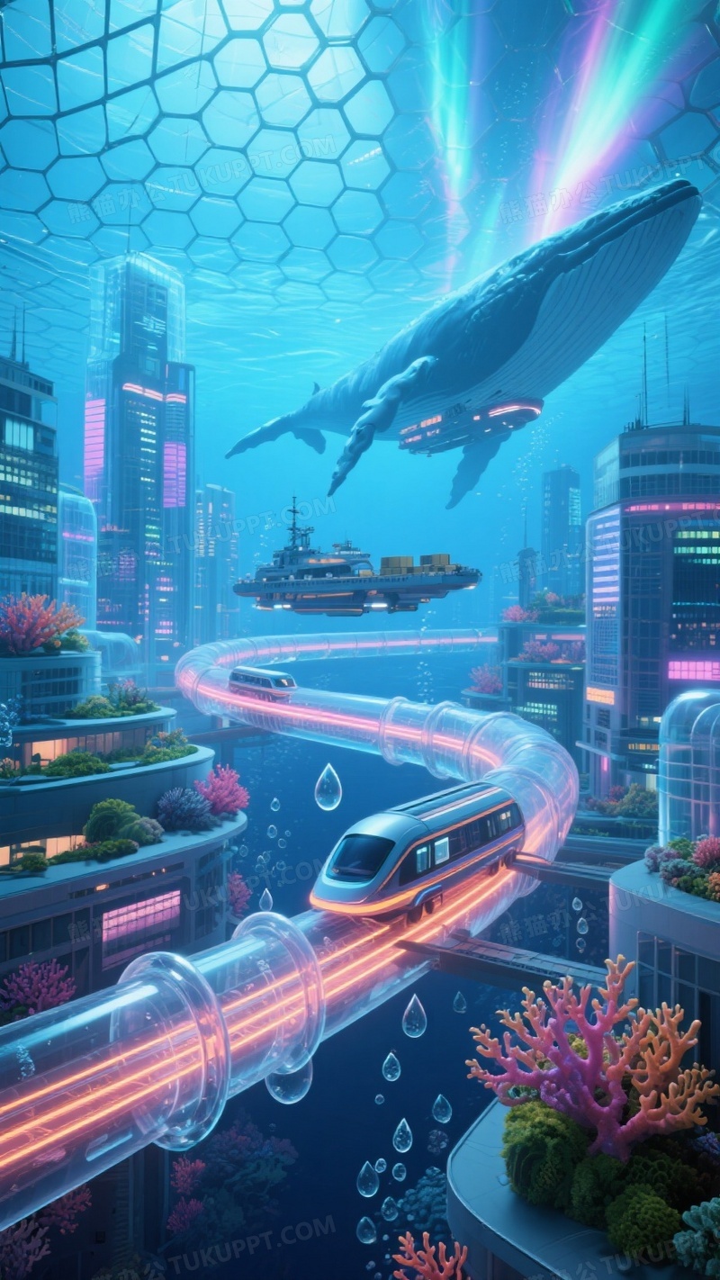本作品内容为未来海底都市透明材质建筑群覆盖彩色珊瑚状能量脉络, 格式为 jpg, 大小1 MB, 图片尺寸为936 x 1664, 源文件无水印, 欢迎使用熊猫办公。 如认为平台内容涉嫌侵权,可通过邮件:tousu@tukuppt.com提出书面通知,我们将及时处理。