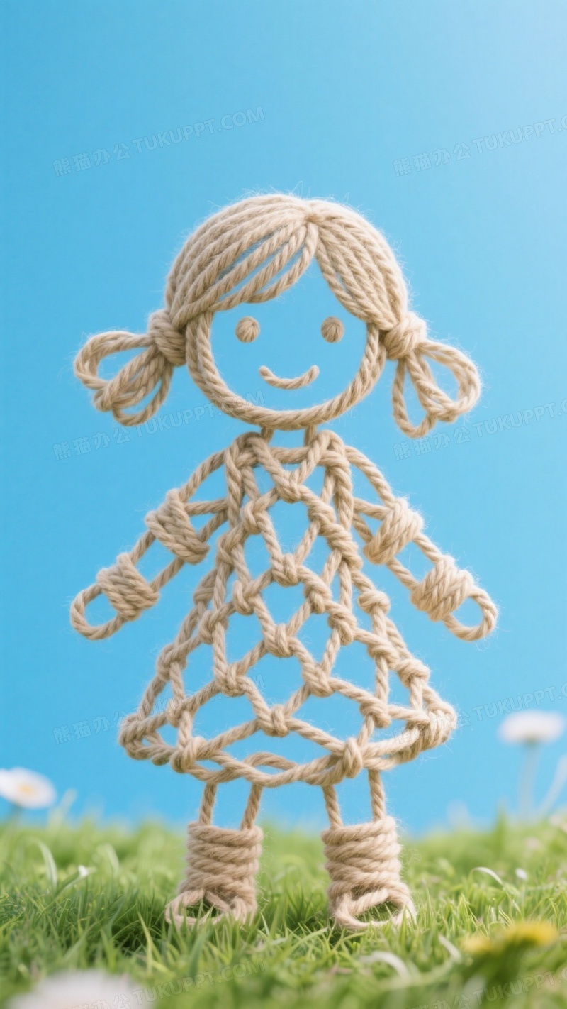 本作品内容为用细麻绳打结编织出一个镂空的3D立体的小女孩形象, 格式为 jpg, 大小1 MB, 图片尺寸为936 x 1664, 源文件无水印, 欢迎使用熊猫办公。 如认为平台内容涉嫌侵权,可通过邮件:tousu@tukuppt.com提出书面通知,我们将及时处理。
