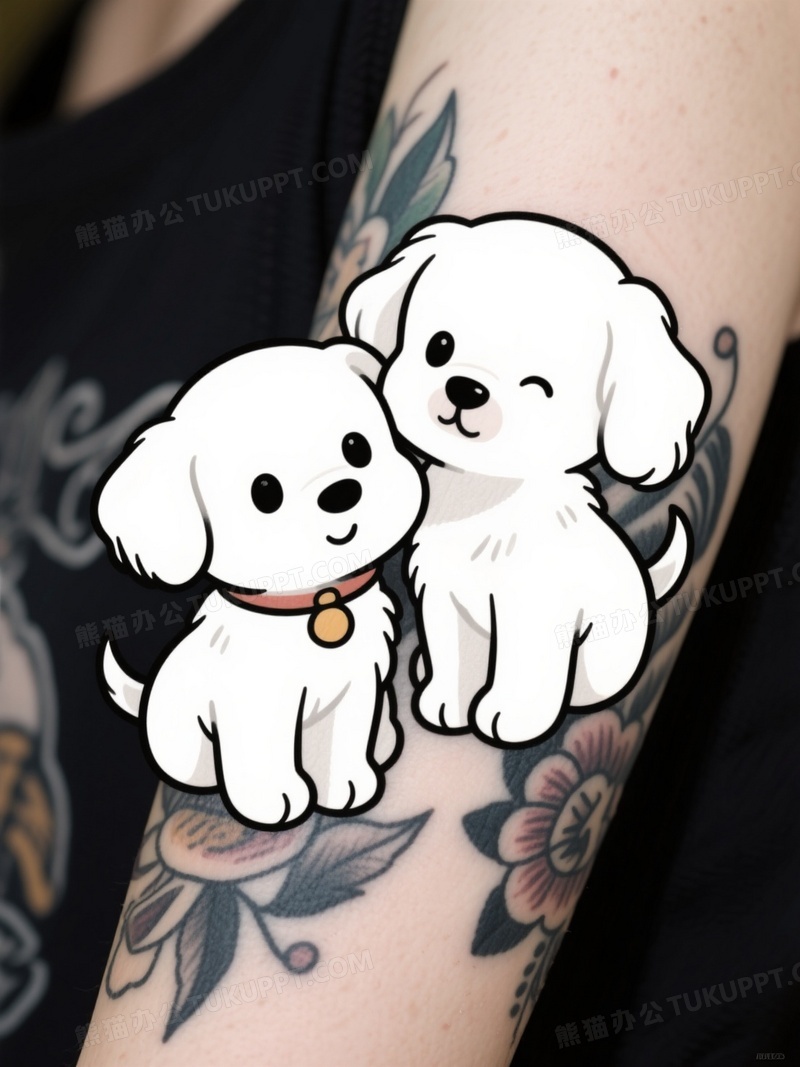 本作品内容为两只白色小狗卡通风纹身手稿, 格式为 jpg, 大小1 MB, 图片尺寸为1104 x 1472, 源文件无水印, 欢迎使用熊猫办公。 如认为平台内容涉嫌侵权,可通过邮件:tousu@tukuppt.com提出书面通知,我们将及时处理。