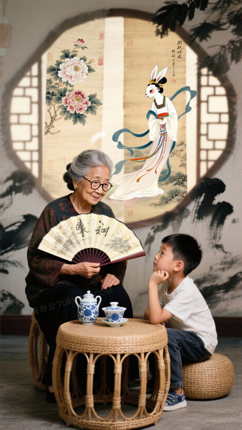 本作品内容为国潮版亲子故事时光奶奶戴老花镜执绢面折扇说神话, 格式为 jpg, 大小1 MB, 图片尺寸为936 x 1664, 源文件无水印, 欢迎使用熊猫办公。 如认为平台内容涉嫌侵权,可通过邮件:tousu@tukuppt.com提出书面通知,我们将及时处理。