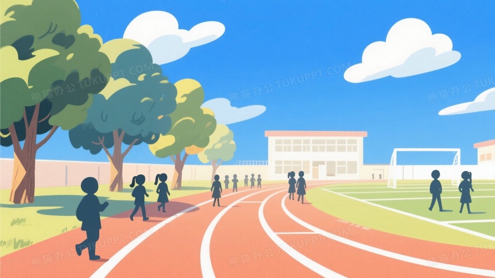 本作品内容为卡通插画风格的学校操场图, 格式为 jpg, 大小1 MB, 图片尺寸为1664 x 936, 源文件无水印, 欢迎使用熊猫办公。 如认为平台内容涉嫌侵权,可通过邮件:tousu@tukuppt.com提出书面通知,我们将及时处理。