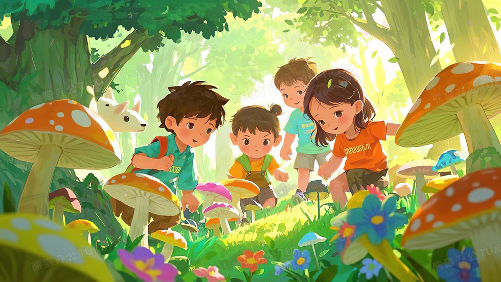 本作品内容为森林里玩耍儿童绘本卡通故事插画, 格式为 jpg, 大小4 MB, 图片尺寸为3072 x 1728, 源文件无水印, 欢迎使用熊猫办公。 如认为平台内容涉嫌侵权,可通过邮件:tousu@tukuppt.com提出书面通知,我们将及时处理。
