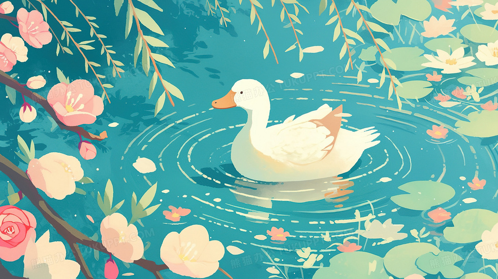 本作品内容为春天自然风景鸭子柳树池塘花草插画, 格式为 jpg, 大小4 MB, 图片尺寸为2912 x 1632, 源文件无水印, 欢迎使用熊猫办公。 如认为平台内容涉嫌侵权,可通过邮件:tousu@tukuppt.com提出书面通知,我们将及时处理。