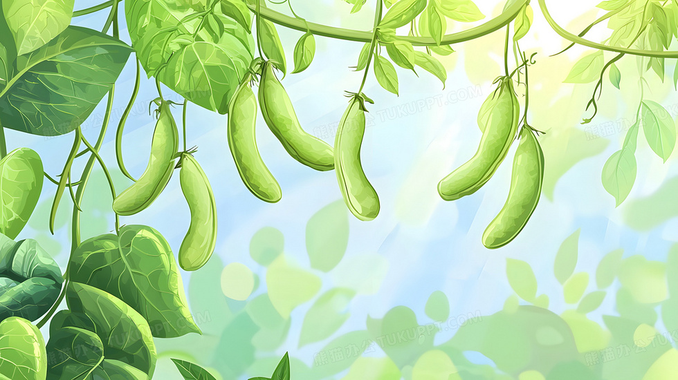 本作品内容为卡通风格蔬菜新鲜食材豌豆豆荚插画, 格式为 jpg, 大小3 MB, 图片尺寸为2912 x 1632, 源文件无水印, 欢迎使用熊猫办公。 如认为平台内容涉嫌侵权,可通过邮件:tousu@tukuppt.com提出书面通知,我们将及时处理。