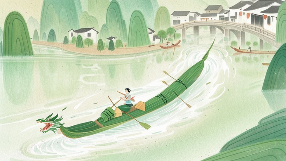 本作品内容为绿色长条粽叶一条龙舟在扬船桨划行, 格式为 jpg, 大小1 MB, 图片尺寸为2048 x 1152, 作品中背景图片无需修改, 源文件无水印,可以直接使用, 欢迎使用熊猫办公。 如认为平台内容涉嫌侵权,可通过邮件:tousu@tukuppt.com提出书面通知,我们将及时处理。