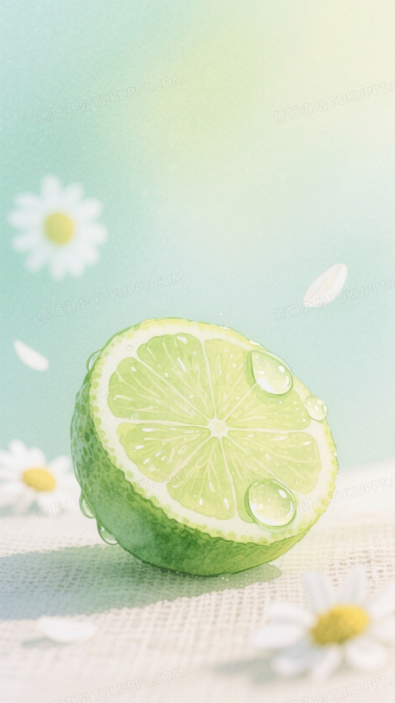 夏日清新手机壁纸水彩青柠特写