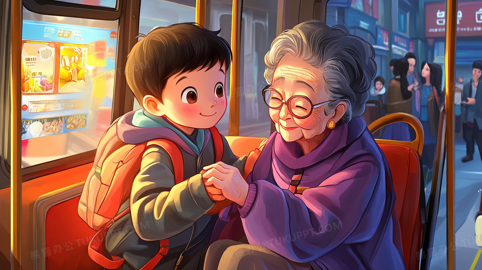 本作品内容为公交车上搀扶让座给老人的卡通可爱男孩插画, 格式为 jpg, 大小3 MB, 图片尺寸为2912 x 1632, 源文件无水印, 欢迎使用熊猫办公。 如认为平台内容涉嫌侵权,可通过邮件:tousu@tukuppt.com提出书面通知,我们将及时处理。