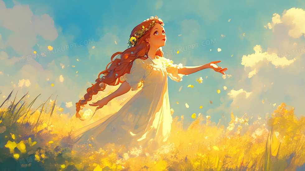 本作品内容为蔚蓝天空草地卡通女孩唯美风景插画, 格式为 jpg, 大小2 MB, 图片尺寸为2912 x 1632, 源文件无水印, 欢迎使用熊猫办公。 如认为平台内容涉嫌侵权,可通过邮件:tousu@tukuppt.com提出书面通知,我们将及时处理。