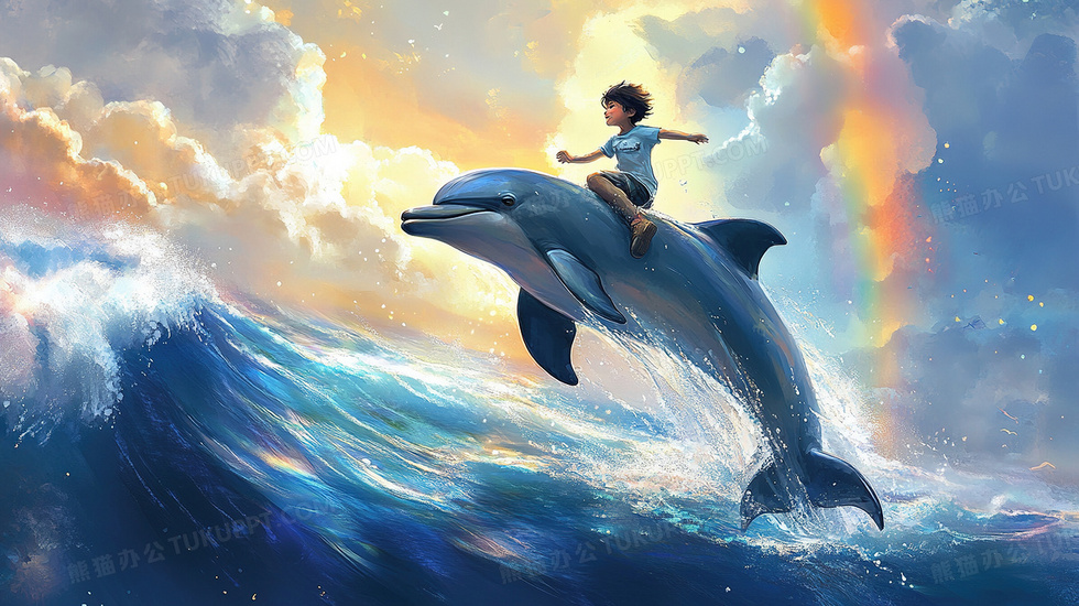 本作品内容为骑海豚的男孩唯美壁纸插画, 格式为 jpg, 大小4 MB, 图片尺寸为2912 x 1632, 源文件无水印, 欢迎使用熊猫办公。 如认为平台内容涉嫌侵权,可通过邮件:tousu@tukuppt.com提出书面通知,我们将及时处理。