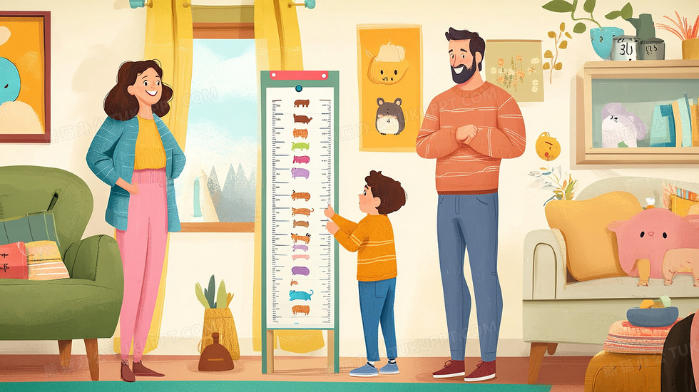 本作品内容为家中父母给孩子测量身高卡通插画, 格式为 jpg, 大小3 MB, 图片尺寸为2912 x 1632, 源文件无水印, 欢迎使用熊猫办公。 如认为平台内容涉嫌侵权,可通过邮件:tousu@tukuppt.com提出书面通知,我们将及时处理。