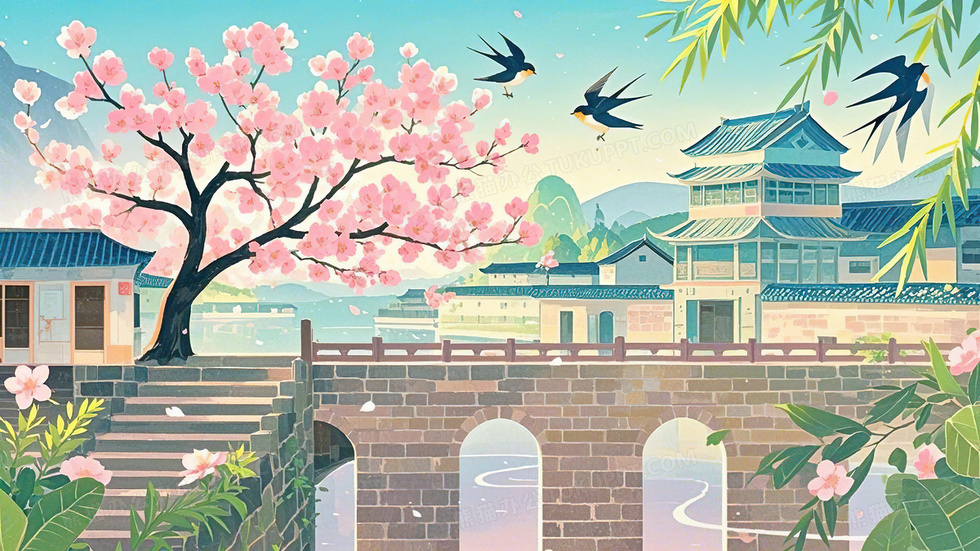 本作品内容为国潮风桃花春天春季大自然插画, 格式为 jpg, 大小5 MB, 图片尺寸为3072 x 1728, 源文件无水印, 欢迎使用熊猫办公。 如认为平台内容涉嫌侵权,可通过邮件:tousu@tukuppt.com提出书面通知,我们将及时处理。