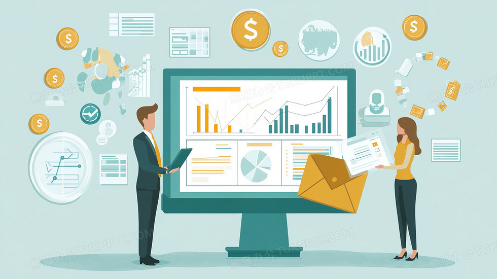 本作品内容为财务人员看电脑显示金融数据卡通艺术插画, 格式为 jpg, 大小2 MB, 图片尺寸为2912 x 1632, 源文件无水印, 欢迎使用熊猫办公。 如认为平台内容涉嫌侵权,可通过邮件:tousu@tukuppt.com提出书面通知,我们将及时处理。