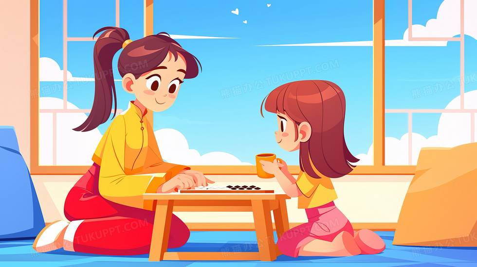 本作品内容为妈妈陪伴小女孩学习写字插画, 格式为 jpg, 大小2 MB, 图片尺寸为2912 x 1632, 源文件无水印, 欢迎使用熊猫办公。 如认为平台内容涉嫌侵权,可通过邮件:tousu@tukuppt.com提出书面通知,我们将及时处理。