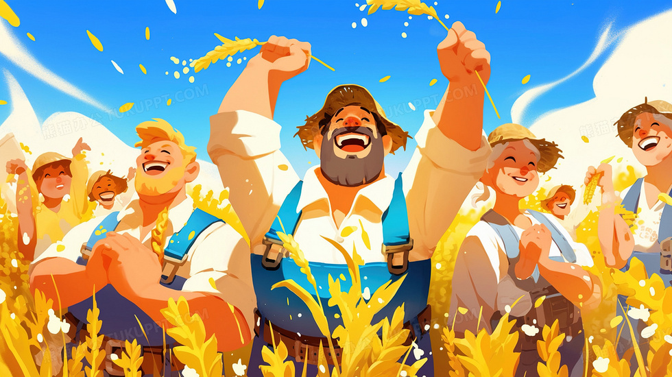首页 > 插画 > 科技艺术 > 卡通漫画 > 田野大丰收稻谷开心农民插画