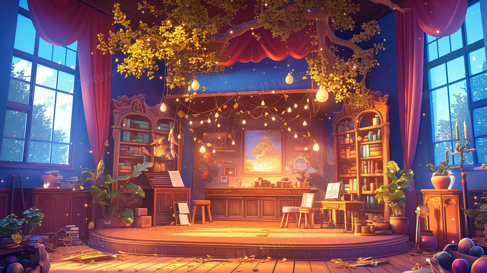 本作品内容为音乐会表演舞台剧院场景特写插画, 格式为 jpg, 大小3 MB, 图片尺寸为2912 x 1632, 源文件无水印, 欢迎使用熊猫办公。 如认为平台内容涉嫌侵权,可通过邮件:tousu@tukuppt.com提出书面通知,我们将及时处理。