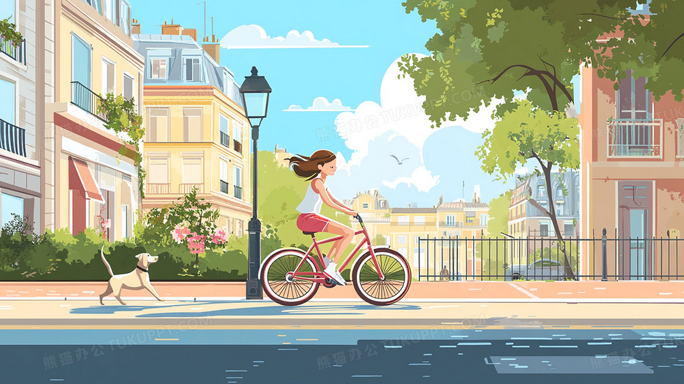 本作品内容为晨练锻炼骑自行车插画, 格式为 jpg, 大小1 MB, 图片尺寸为2912 x 1632, 源文件无水印, 欢迎使用熊猫办公。 如认为平台内容涉嫌侵权,可通过邮件:tousu@tukuppt.com提出书面通知,我们将及时处理。