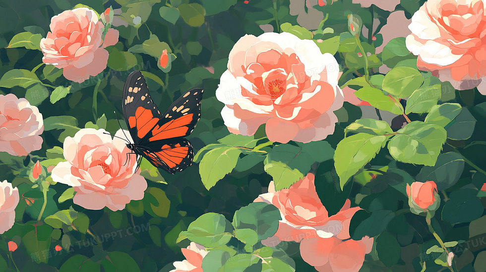 本作品内容为春季春天盛开的蔷薇花上的蝴蝶插画, 格式为 jpg, 大小3 MB, 图片尺寸为2912 x 1632, 源文件无水印, 欢迎使用熊猫办公。 如认为平台内容涉嫌侵权,可通过邮件:tousu@tukuppt.com提出书面通知,我们将及时处理。