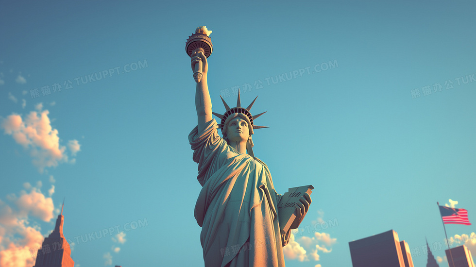 本作品内容为美国的自由女神像三维插画, 格式为 jpg, 大小6 MB, 图片尺寸为2912 x 1632, 源文件无水印, 欢迎使用熊猫办公。 如认为平台内容涉嫌侵权,可通过邮件:tousu@tukuppt.com提出书面通知,我们将及时处理。