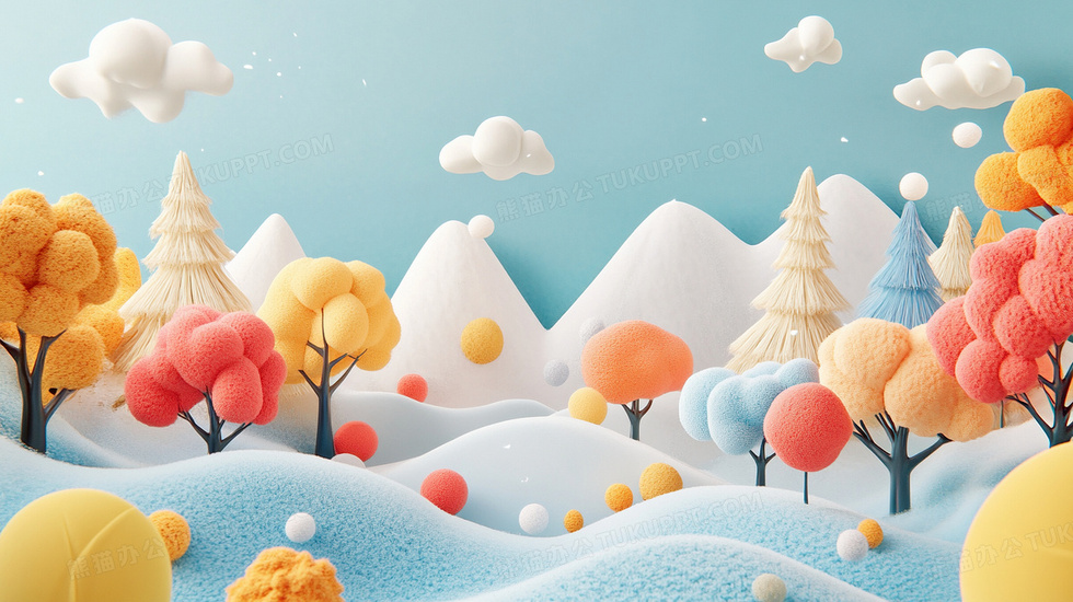 本作品内容为大自然春天梦幻文艺清新毛绒立体风景背景, 格式为 jpg, 大小3 MB, 图片尺寸为2912 x 1632, 作品中背景图片无需修改, 源文件无水印,可以直接使用, 欢迎使用熊猫办公。 如认为平台内容涉嫌侵权,可通过邮件:tousu@tukuppt.com提出书面通知,我们将及时处理。