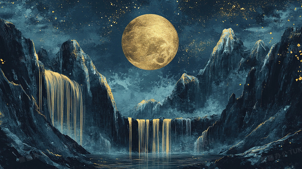 本作品内容为蓝色瀑布烫金中国风山水插画, 格式为 jpg, 大小5 MB, 图片尺寸为2912 x 1632, 源文件无水印, 欢迎使用熊猫办公。 如认为平台内容涉嫌侵权,可通过邮件:tousu@tukuppt.com提出书面通知,我们将及时处理。