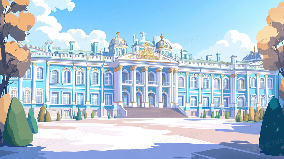 本作品内容为欧式建筑俄罗斯冬宫插画, 格式为 jpg, 大小3 MB, 图片尺寸为2912 x 1632, 源文件无水印, 欢迎使用熊猫办公。 如认为平台内容涉嫌侵权,可通过邮件:tousu@tukuppt.com提出书面通知,我们将及时处理。