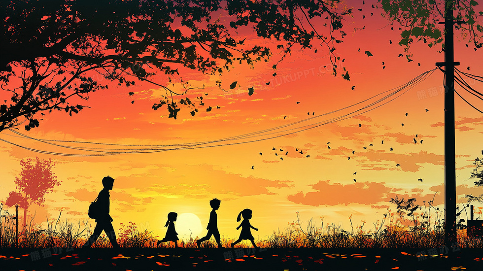本作品内容为剪影风日出日落户外街道走路的人插画, 格式为 jpg, 大小4 MB, 图片尺寸为2912 x 1632, 源文件无水印, 欢迎使用熊猫办公。 如认为平台内容涉嫌侵权,可通过邮件:tousu@tukuppt.com提出书面通知,我们将及时处理。