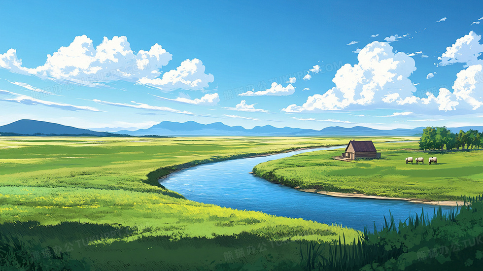 本作品内容为平原河流大自然水资源淡水世界水日插画, 格式为 jpg, 大小4 MB, 图片尺寸为2912 x 1632, 源文件无水印, 欢迎使用熊猫办公。 如认为平台内容涉嫌侵权,可通过邮件:tousu@tukuppt.com提出书面通知,我们将及时处理。