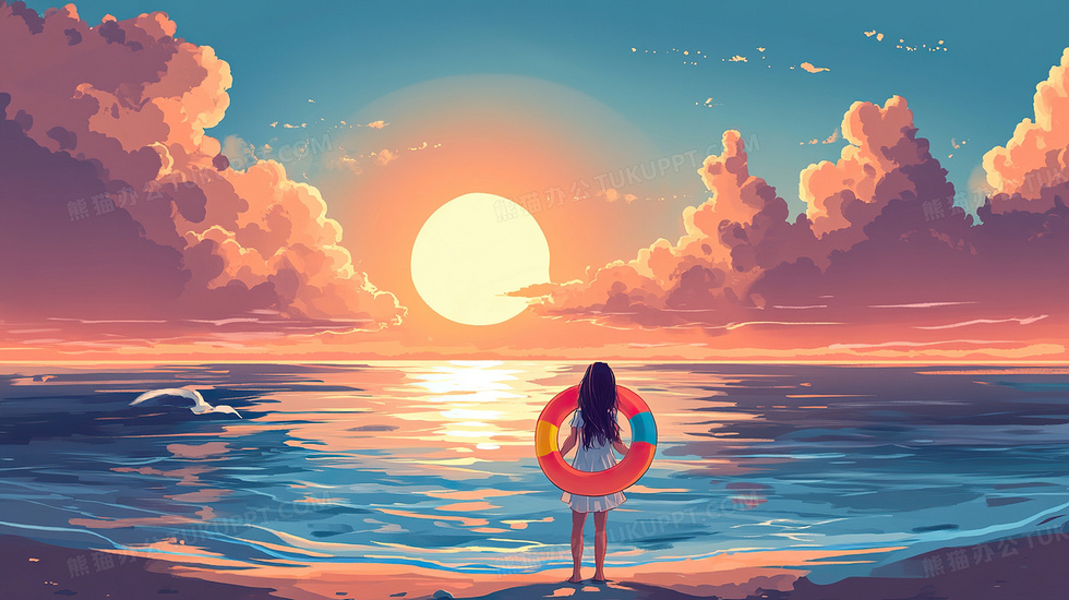本作品内容为拿着游泳圈站在海边的女孩插画, 格式为 jpg, 大小3 MB, 图片尺寸为2912 x 1632, 源文件无水印, 欢迎使用熊猫办公。 如认为平台内容涉嫌侵权,可通过邮件:tousu@tukuppt.com提出书面通知,我们将及时处理。