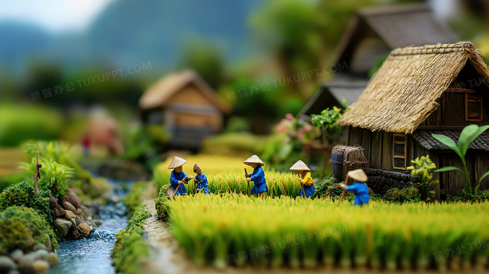 本作品内容为微缩水稻农业农村田地种植背景, 格式为 jpg, 大小3 MB, 图片尺寸为2912 x 1632, 作品中背景图片无需修改, 源文件无水印,可以直接使用, 欢迎使用熊猫办公。 如认为平台内容涉嫌侵权,可通过邮件:tousu@tukuppt.com提出书面通知,我们将及时处理。