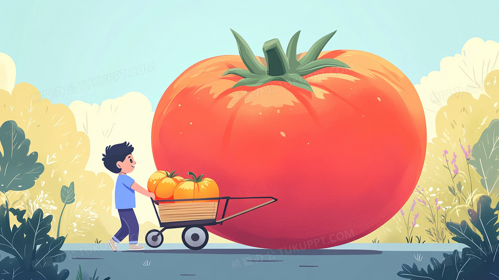 本作品内容为一个巨大番茄创意插画, 格式为 jpg, 大小3 MB, 图片尺寸为2912 x 1632, 源文件无水印, 欢迎使用熊猫办公。 如认为平台内容涉嫌侵权,可通过邮件:tousu@tukuppt.com提出书面通知,我们将及时处理。