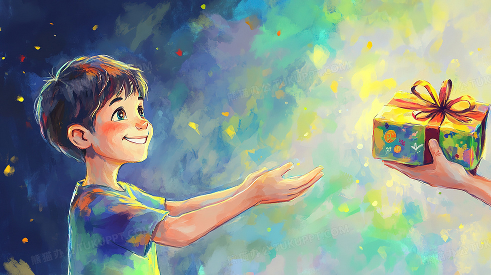 本作品内容为生日收到礼物的可爱卡通男孩插画, 格式为 jpg, 大小3 MB, 图片尺寸为2912 x 1632, 源文件无水印, 欢迎使用熊猫办公。 如认为平台内容涉嫌侵权,可通过邮件:tousu@tukuppt.com提出书面通知,我们将及时处理。